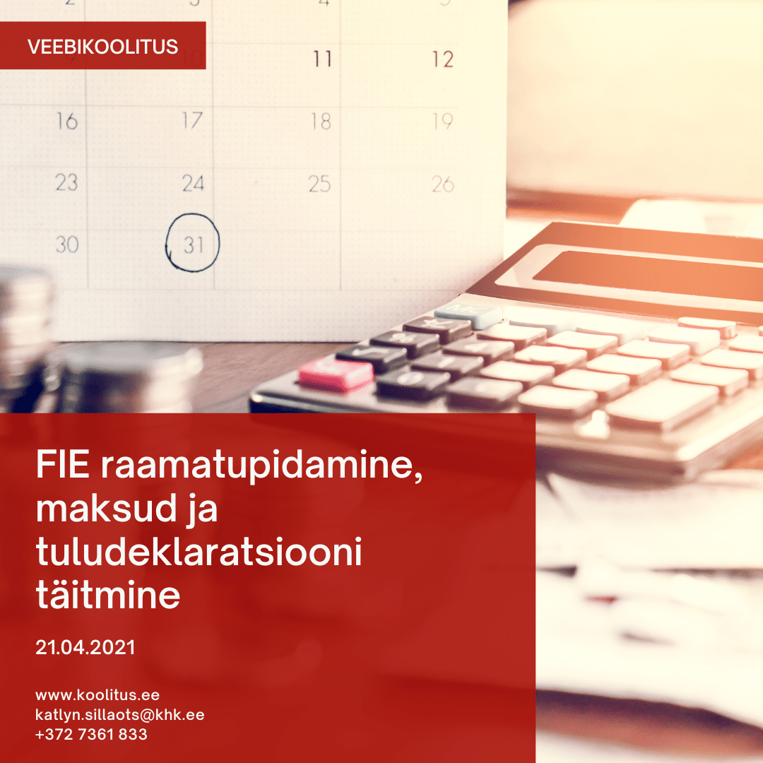 Kutsume Sind veebikoolitusele! Koolitus täiendab algõppe koolitusel omandatud teadmisi äriühingu raamatupidamisest ja maksundusest. Koolitus annab praktilisi oskuseid, mis võimaldavad alustada tööd raamatupidaja erialal ning annab julgust võtma vastutust ettevõtte raamatupidamise arvestuse osas. Registreeru koolitusele SIIN.